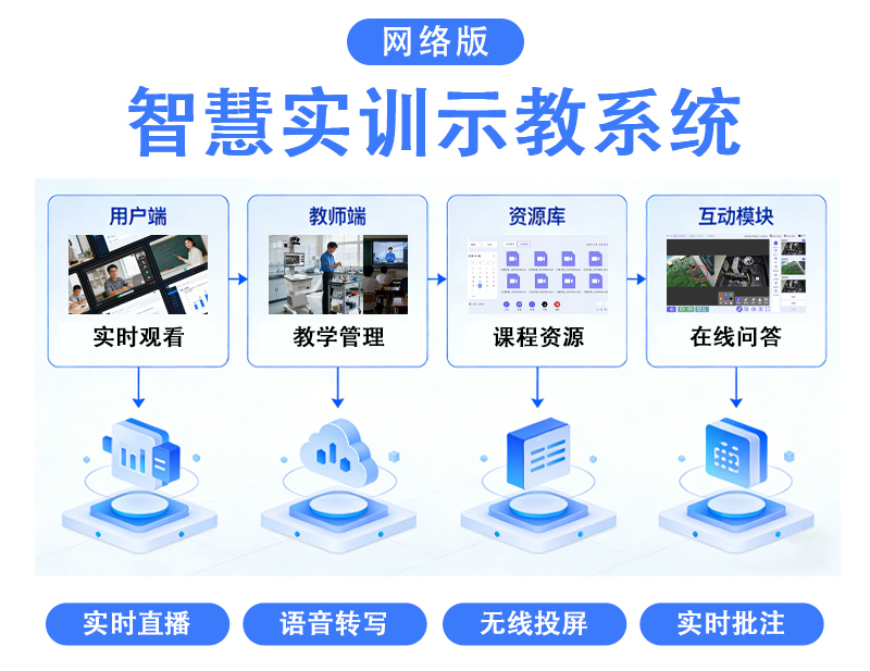 实训实验智慧示范教学系统 | V1.0 | 支持20+路摄像机接入、分组实操、多画面布局、无线投屏、画面批注、资源扫码下载 |